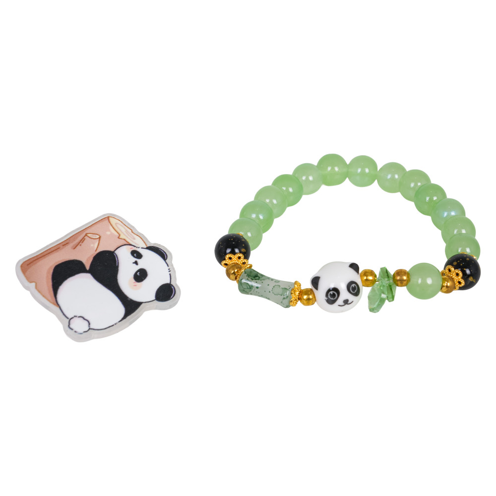 Această brățară adorabilă cu mărgele și pandă este ideală pentru copiii de la 3 ani. Setul conține o brățară colorată, realizată din mărgele multicolore, cu un element decorativ în formă de cap de panda și închidere cu motiv panda. Setul este creat cu atenție la detalii și în culori vibrante.