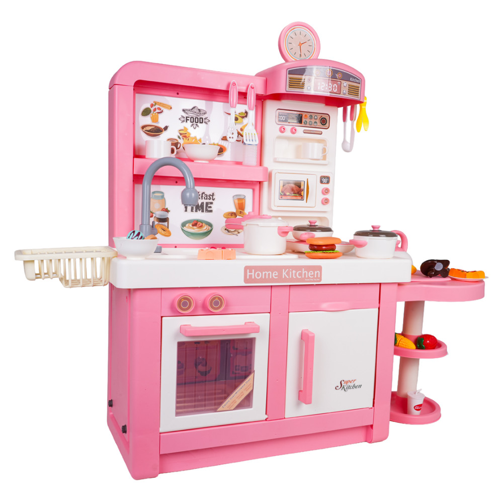O bucătărie de jucărie realistă și fermecătoare, ideală pentru copiii de la 3 ani! Toate componentele sunt fabricate din materiale de cea mai bună calitate, sigure pentru cei mici. Designul roz-alb o face un accesoriu perfect pentru orice cameră de copil.