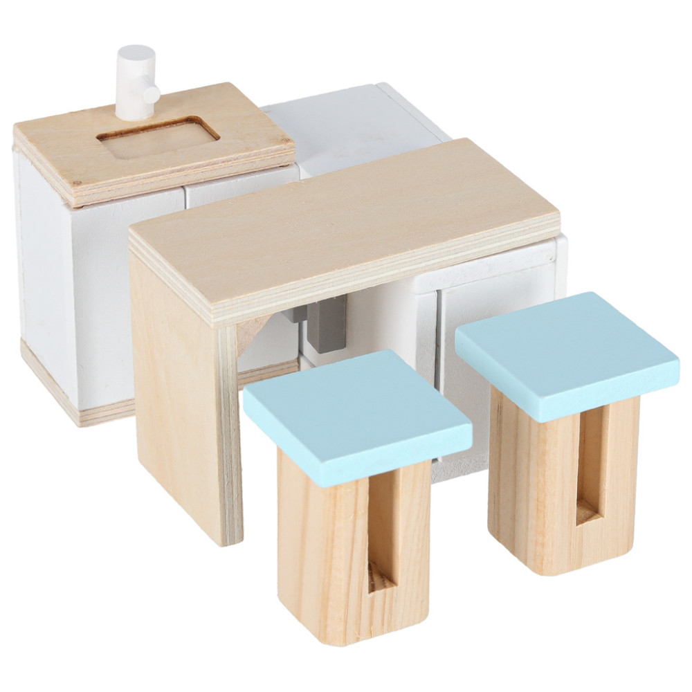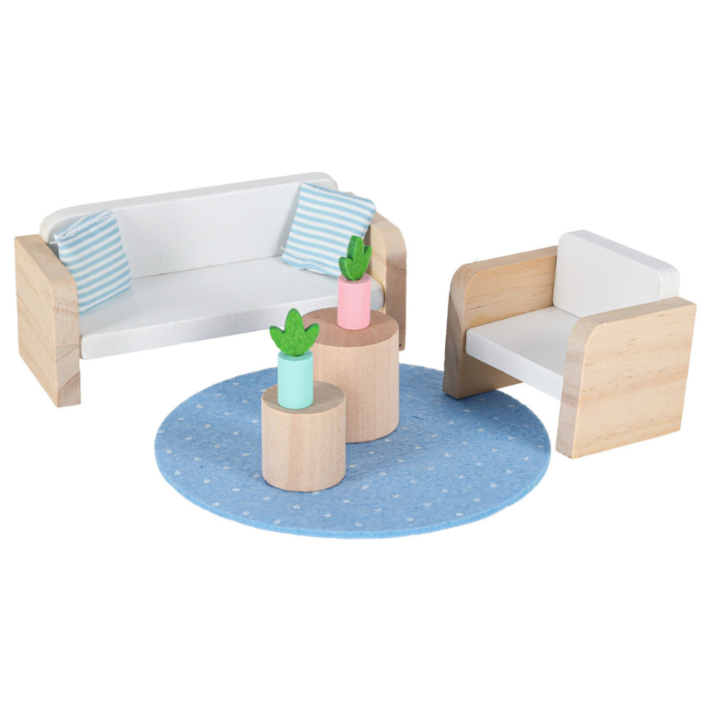 Căsuța miniaturală permite copilului să aibă mereu jucăriile preferate la îndemână. În formă pliată, ocupă puțin spațiu, iar mânerul lat facilitează transportul – poate fi luată oriunde. Este locul ideal pentru păstrarea păpușilor sau figurinelor, iar joaca cu ele stimulează imaginația copiilor. Mobilierul din lemn poate fi strâns în valiză după joacă, ceea ce ajută copilul să învețe obiceiul de a-și organiza jucăriile.