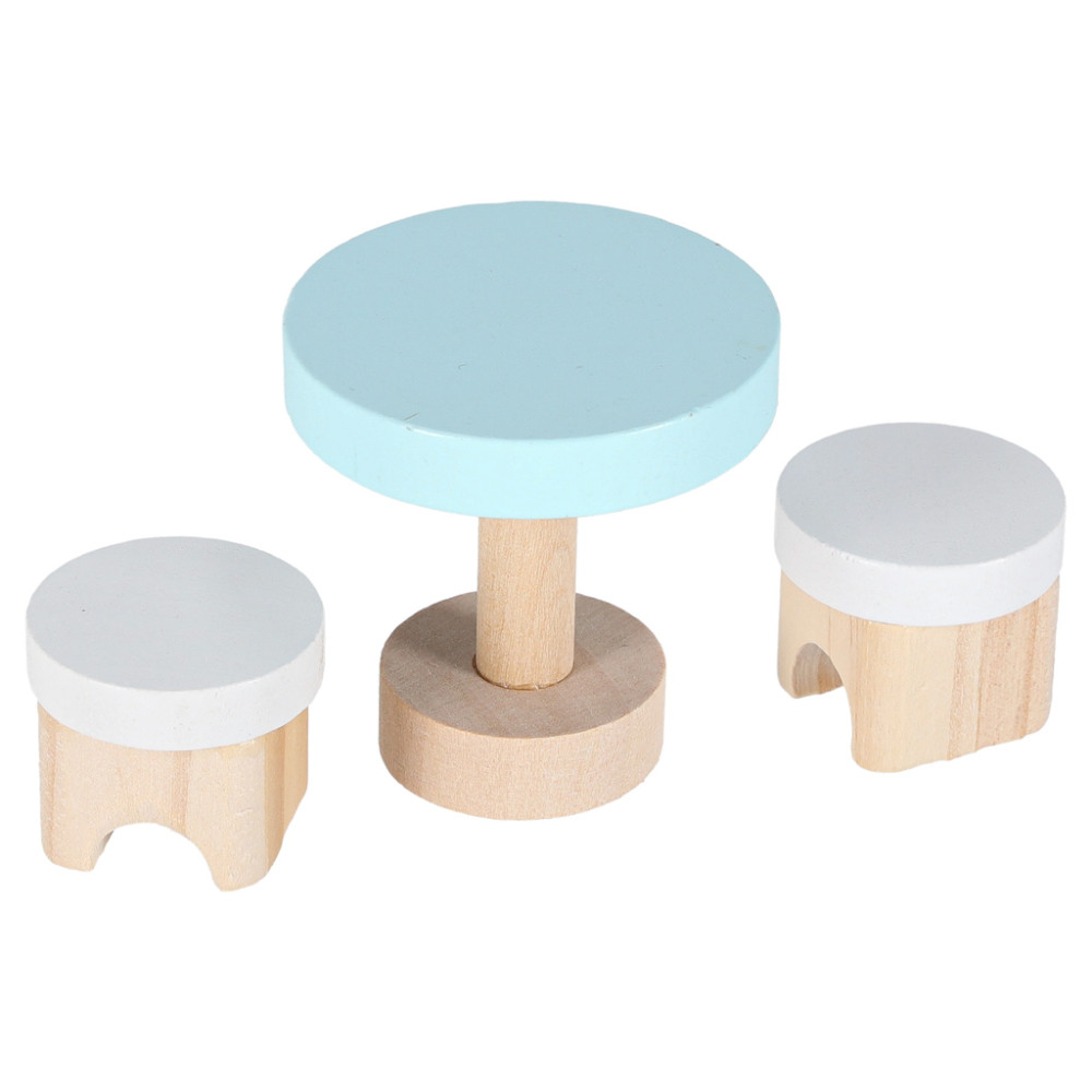 combinația dintre lemn și culori pastelate conferă setului un aspect plăcut
