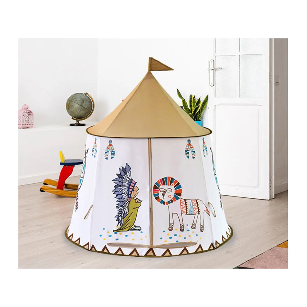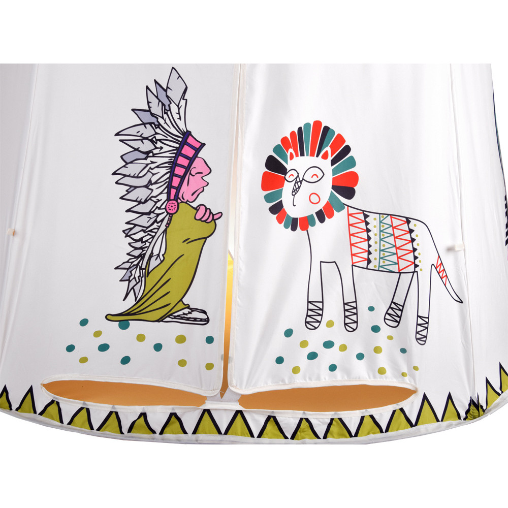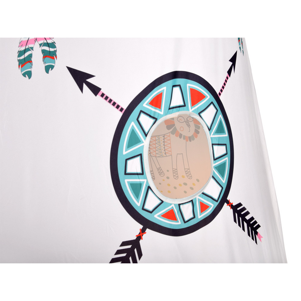 Un cort de joacă cu motive native americane vă asigura multă distracție creativă pentru fiecare micuț. Cortul este realizat din material respirabil ușor de curățat. Constructia cortului asigură o ventilație suficientă și siguranță a copilului atunci când se joacă in interior. Datorită construcției ușoare, corturile sunt ușor de pliat și de desfășurat, permițându-le să fie mutate dintr-un loc în altul în funcție de nevoile Dvs. Este suficient de mic pentru a fi plasat în camera unui copil, dar suficient de mare pentru ca un copil să se joace liber și să îl plaseze în ea.