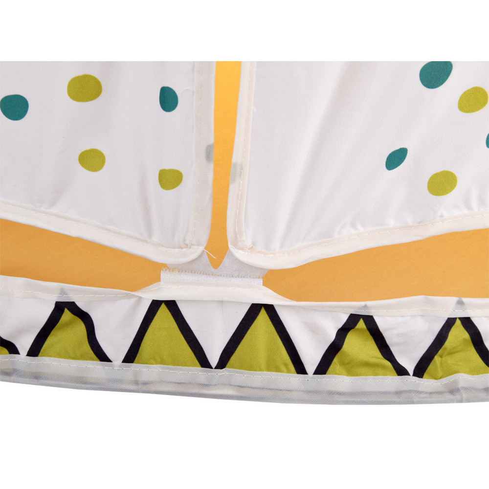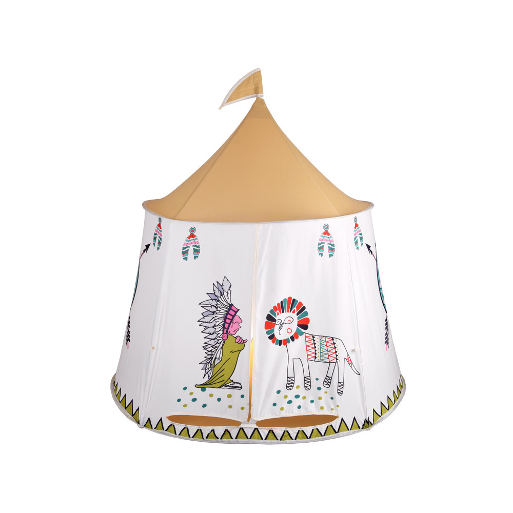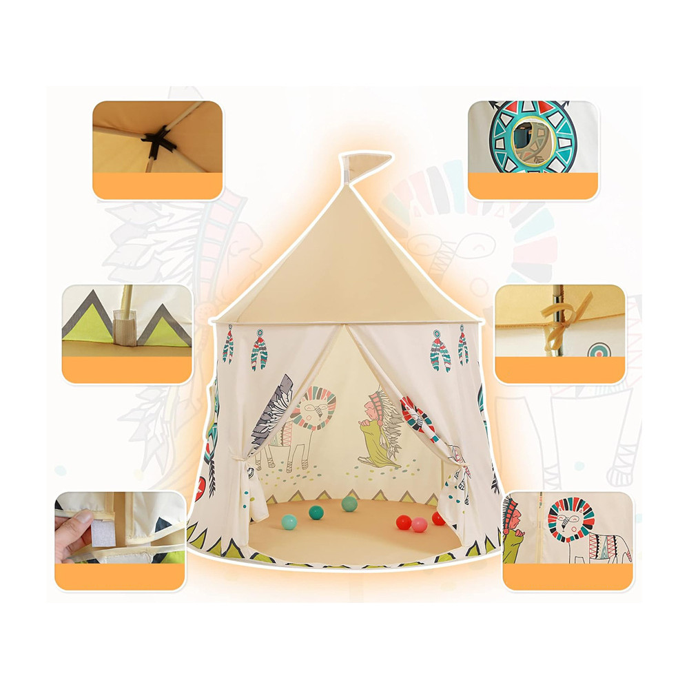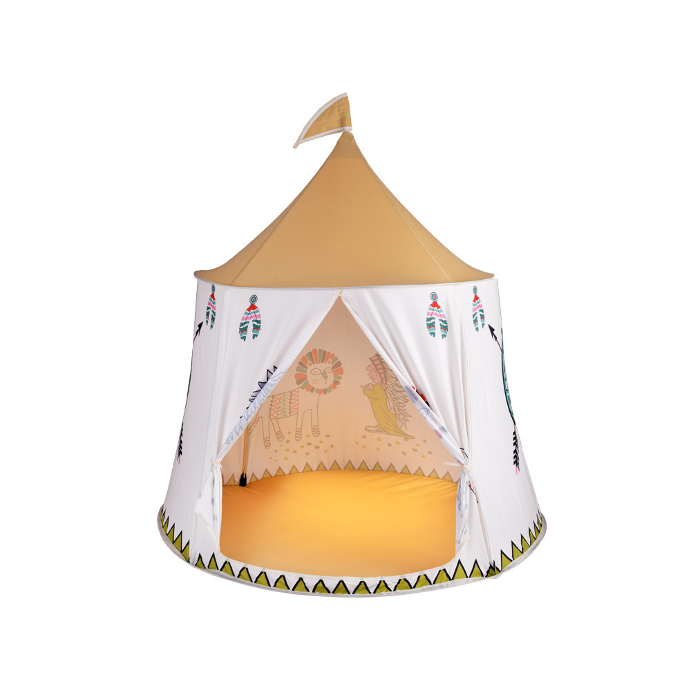 Un cort de joacă cu motive native americane vă asigura multă distracție creativă pentru fiecare micuț. Cortul este realizat din material respirabil ușor de curățat. Constructia cortului asigură o ventilație suficientă și siguranță a copilului atunci când se joacă in interior. Datorită construcției ușoare, corturile sunt ușor de pliat și de desfășurat, permițându-le să fie mutate dintr-un loc în altul în funcție de nevoile Dvs. Este suficient de mic pentru a fi plasat în camera unui copil, dar suficient de mare pentru ca un copil să se joace liber și să îl plaseze în ea.