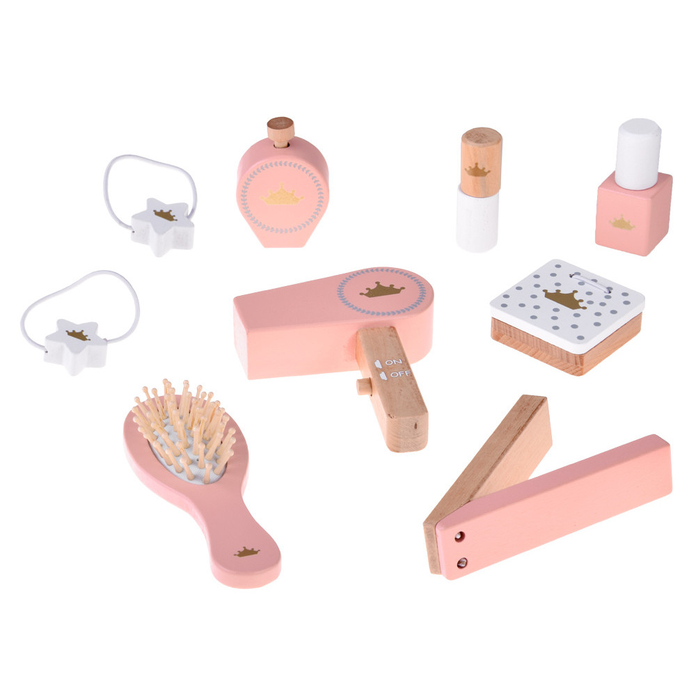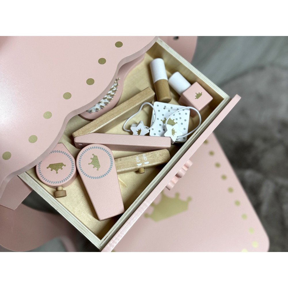 Masă de toaletă Royal din lemn cu oglindă + scaun + accesorii - roz