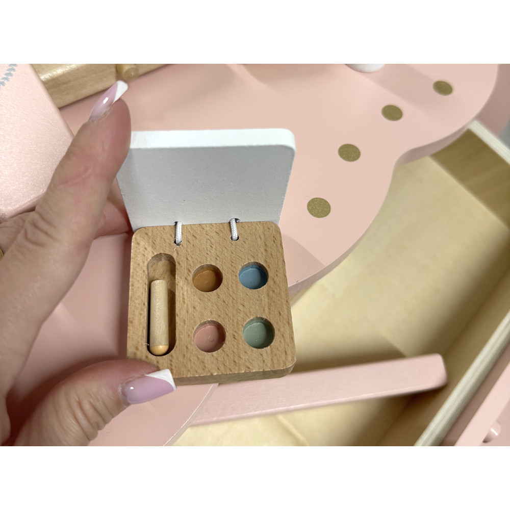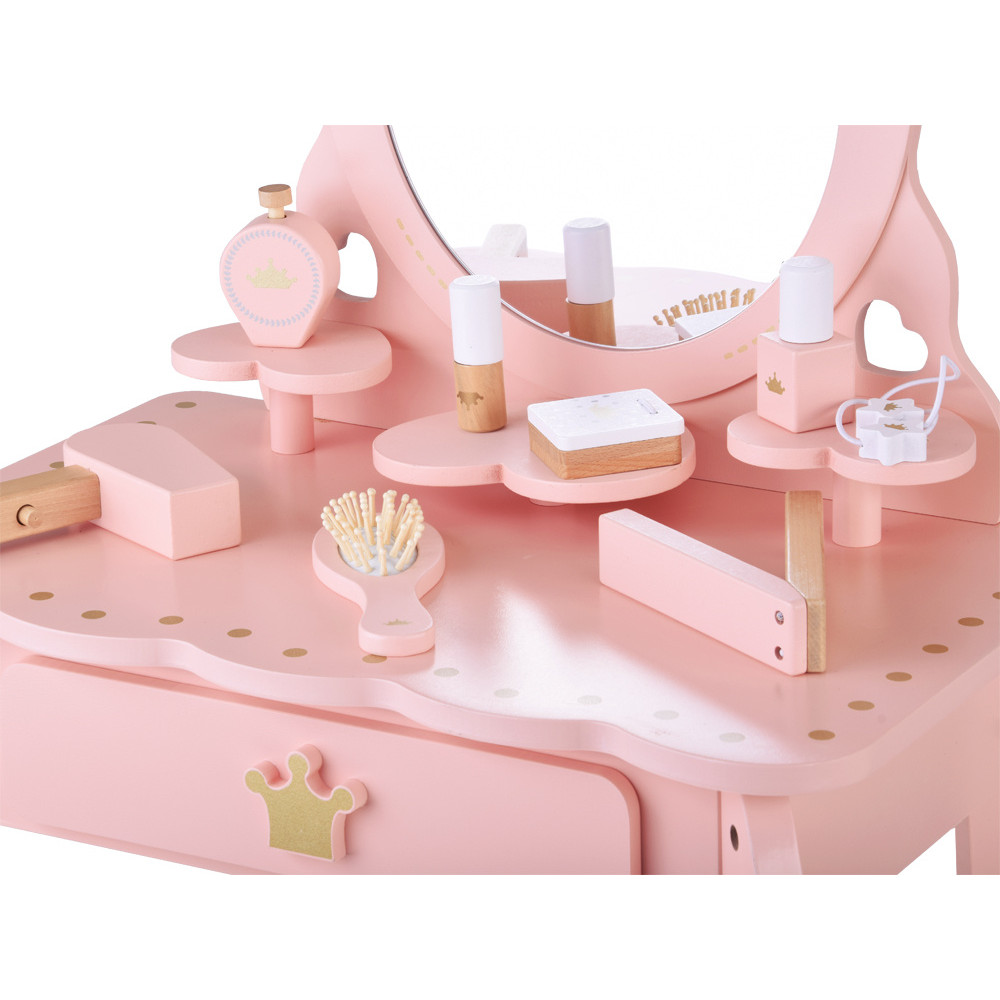 Structura solidă este realizată din materiale rezistente. Mobilierul este destinat asamblării de către utilizator. Această măsuță de toaletă este visul împlinit al fiecărei fetițe, un cadou adorabil care va rezista ani de zile. Dezvoltă creativitatea și încurajează jocul de rol.