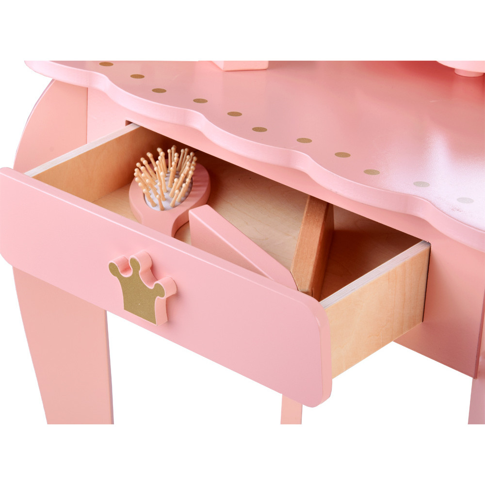 Măsuța de toaletă le oferă fiecărei fetițe ocazia să se simtă specială și să-și creeze propriul colțișor de frumusețe, unde se poate juca de-a stilista și creatoarea de modă.