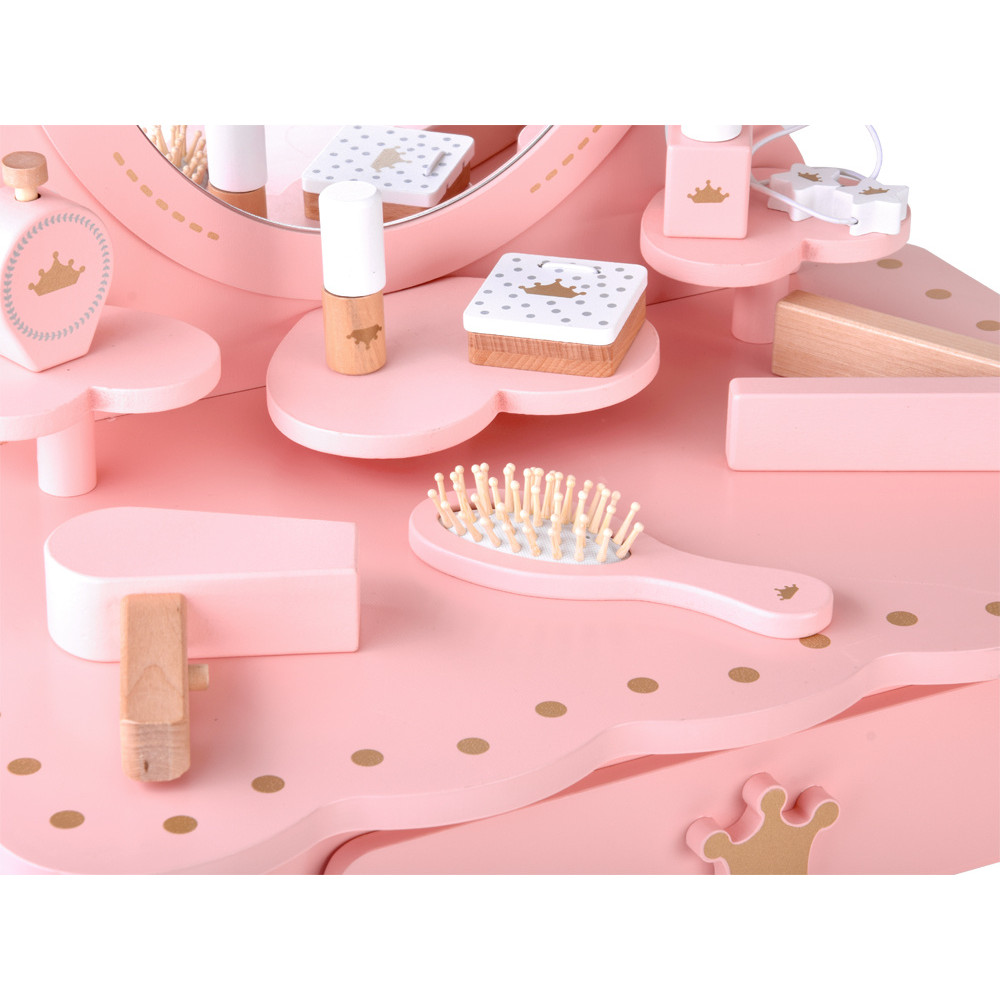 - Masă de toaletă Royal din lemn cu oglindă + scaun + accesorii - roz