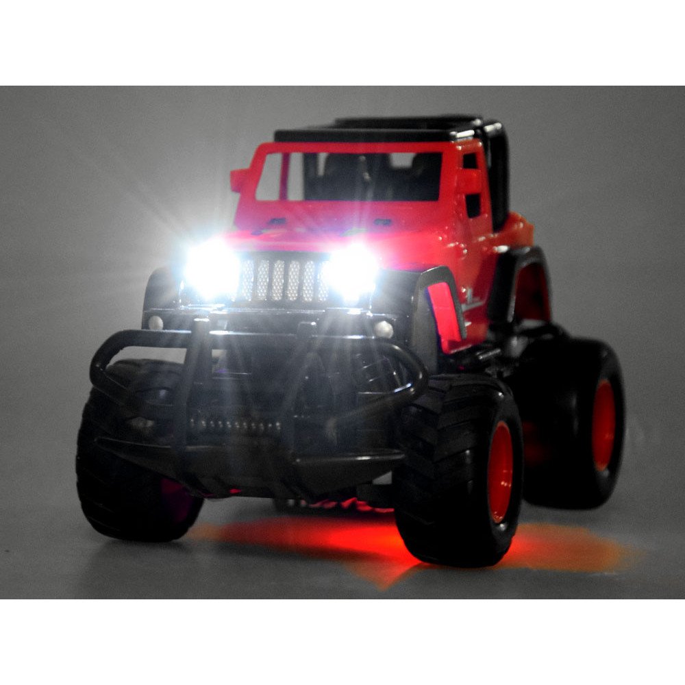 Această mașină off-road, controlată printr-o telecomandă practică în formă de volan sport, oferă ore întregi de distracție pentru cei mici. Vehiculul este realizat integral din plastic roșu și negru, iar anvelopele cu profil lat asigură o aderență excelentă pe orice teren.