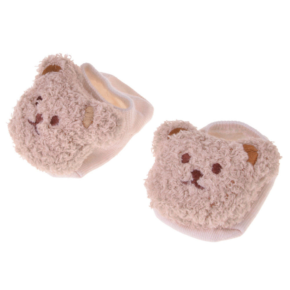 Poartă rochiță albă cu aplicații florale, pulover maro cu fundiță și papucei moi cu ursuleț.