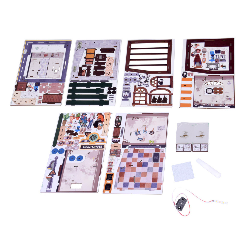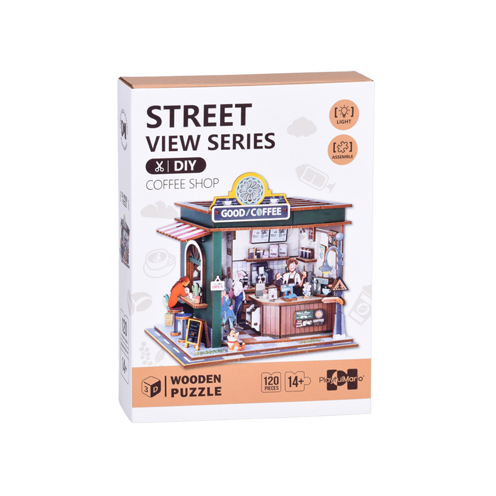 Puzzle 3D din lemn cu iluminare LED, 120 piese COFFEE SHOP – cafenea