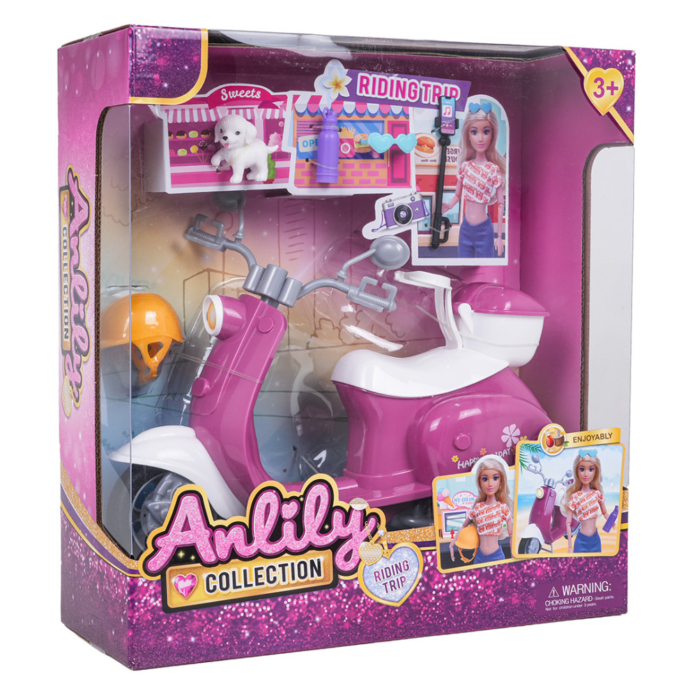 Scuter pentru păpuși cu accesorii – ANLILY „Excursie cu scuterul”