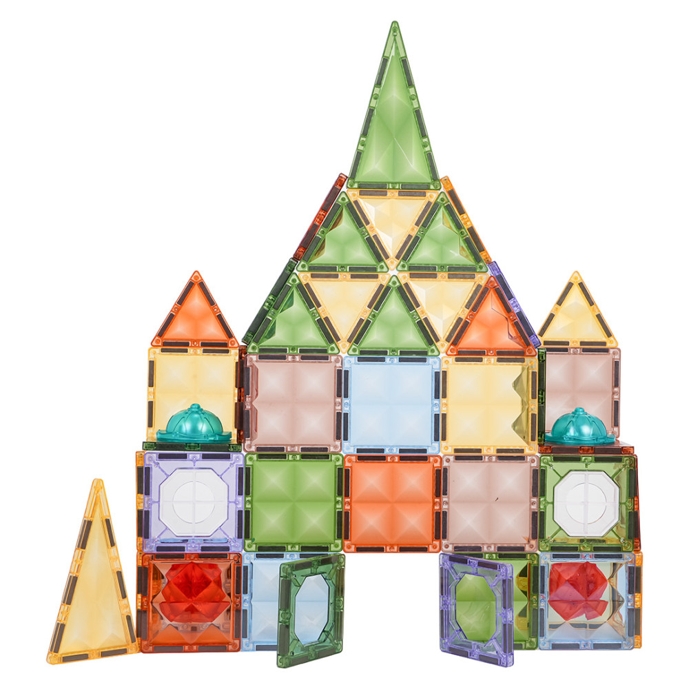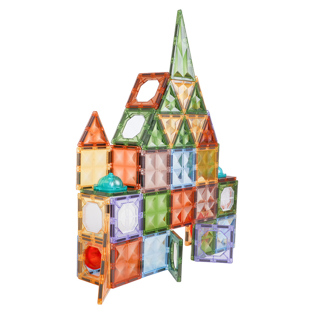 Conține cuburi magnetice, autocolante, șabloane decorative și discuri luminoase. Cuburile sunt fabricate din plastic rezistent și se conectează prin magneți neodim, permițând asamblarea în diferite configurații și unghiuri pentru a crea structuri 3D. Discurile luminoase funcționează cu baterii LR1130 – în total 12 bucăți. Activitatea de construcție stimulează creativitatea, dezvoltă răbdarea și capacitatea de concentrare a copiilor.
