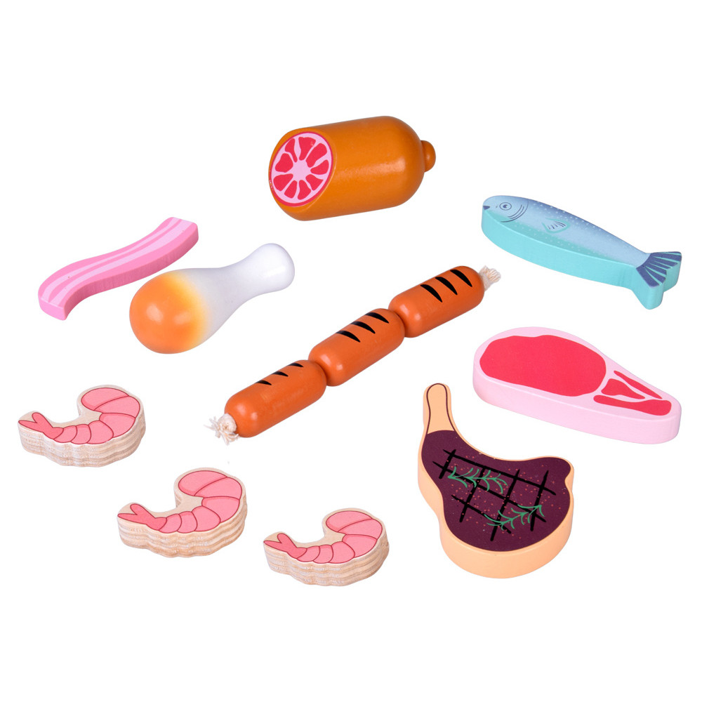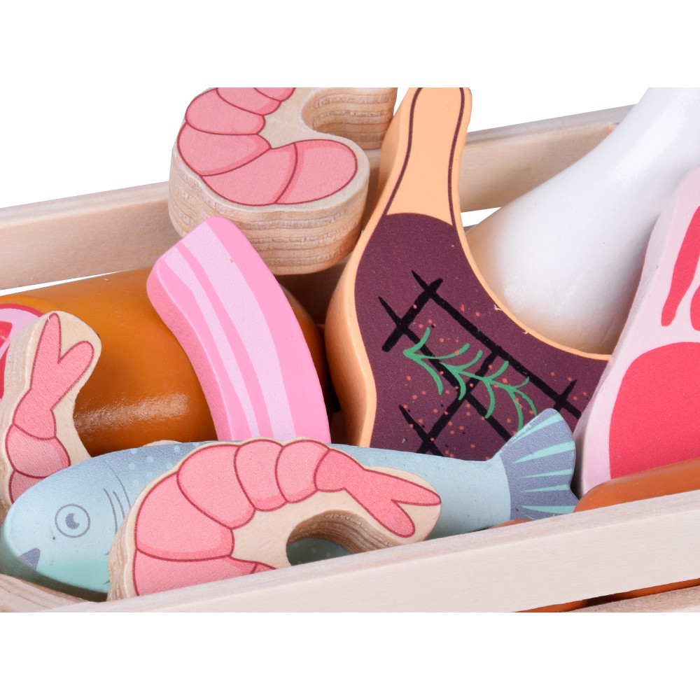 Set de joacă din lemn cu mezeluri și pește, pentru copii – MEAT BOX