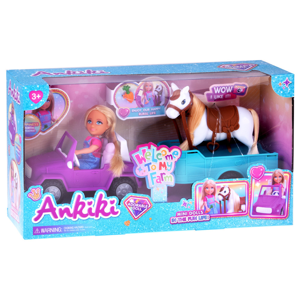 Set fermier Ankiki cu cal, mașină și remorcă - WELCOME TO MY FARM