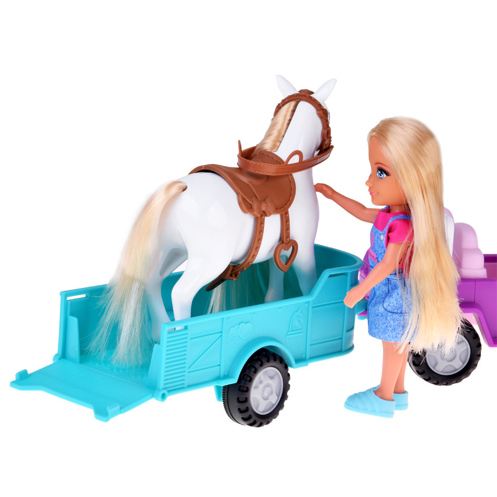 Setul cu păpușă fermier, cal, mașină și remorcă este un cadou minunat pentru orice copil pasionat de cai. Piesele atent realizate oferă ore întregi de joacă fantastică, explorând îngrijirea animalelor și viața la fermă.