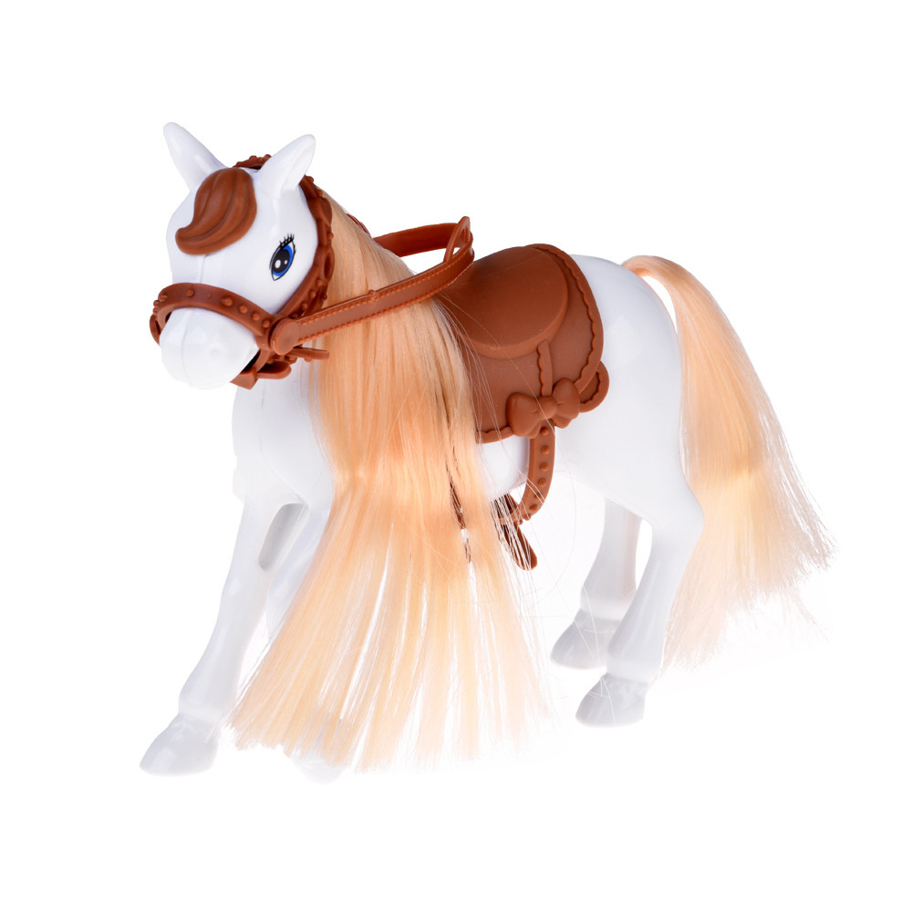 Calul este cel mai drăgălaș element al acestui set. Alb, cu o față prietenoasă și cu coamă și coadă aurii, este visul oricărui mic iubitor de animale. Este dotat cu șa și frâu maro, ambele reglabile.